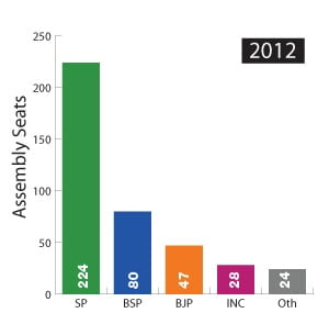 UP was the flavour. The results kept trickling in. Analysts kept tweaking their analysis to keep it in sync with the emerging results. During the morning hours, Congress was ‘a force to reckon with after years’. By late afternoon, they surmised, based on their decades of experience of reporting the key political state, that ‘Congress had little chance to make it in states where regional strongheads have emerged’. The SP figure kept rising in that Super Graphic, and seemed to pause at 217 for some time. Then 218.