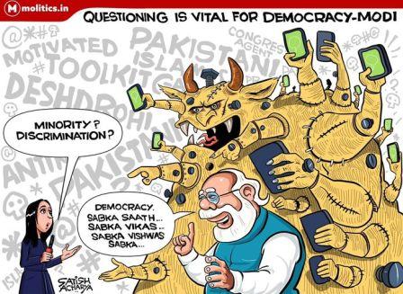 The harassment undermines, if not mocks, Modi’s answer to her question, particularly his saying that “democracy is in India’s DNA”. The hate campaign against the WSJ journalist reinforces the claim that such toxic harassment, trolling and abuse, and the intolerance these betray are also in the DNA of present-day India.”